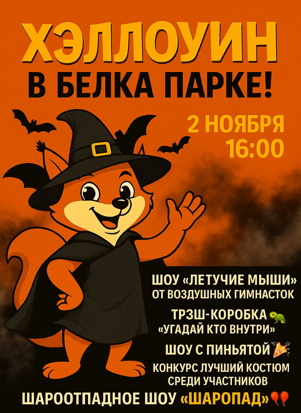 Хэллоуин в «Белка Парке» – 2 ноября! 2 ноября в 16:00 приглашаем всех на увлекательный праздник Хэллоуина в «Белка Парке»! Вас ждёт: Шоу «Летучие мыши» от воздушных гимнасток Трэш-коробка: угадай кто внутри! Шоу с пиньятой 🍬 Конкурс на лучший костюм среди участников Шароотпадное шоу «Шаропад» 🎈 Приходите всей семьёй за яркими впечатлениями и атмосферой […]